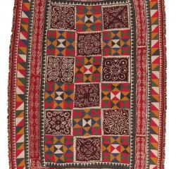 The Sindh province is named after the Indus River and has a long and colorful history stretching back thousands of years. It is the heart of the ralli region and remains largely agricultural, aside from Karachi, Pakistan’s largest city, and a few other urban centers. Sindh is often described as having three distinct areas. Lower Sindh lies in the lowlands along the Arabian Sea and includes part of the Thar Desert. It contains many small villages as well as the ancient capital of Thatta and the sprawling port city of Karachi. The region has long been known for cotton production, textile trading, and a wide range of embroidery traditions. Middle Sindh is irrigated farmland with fishing along the Indus River. Upper Sindh combines farming zones with desert areas. Each region is home to different communities and tribes, and each has preferred symbols and color palettes that appear in their quilts.