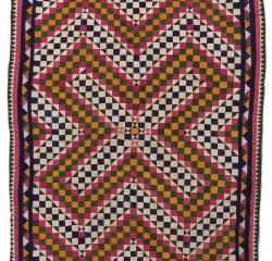 Ralli quilts display an extraordinary range of designs. Most follow a basic structure: a large center field that contains the primary pattern, surrounded by a series of patchwork or appliqué borders. One of the most common decorative themes is flowers. The center field is called baro, or "field of flowers," while individual pieced blocks or appliquéd designs are known as phul, or "flower." The border is called putti. Unfortunately, most specific pattern names have been lost over time. Border patterns, however, have retained more names, including mandherro (a cross-shaped motif inspired by a milk churn), pakharo ("camel cart"), also known as kajuri ("date palm"), kungra kor (a triangular pattern similar to what American quiltmakers call Flying Geese), and kungri (small linked triangles). Designs and color choices vary by region, and some patterns may have been passed down for thousands of years.