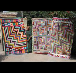 By rough estimate, more than 20 million people sleep under rallis every night. Ideally, each person has at least two quilts—one laid across the ropes or straps of the wooden frame bed (charpoy) as a mattress, and one or more quilts on top. No two rallis are exactly alike. Their differences reflect available fabrics, the chosen pattern, embellishments, and the maker's individual creative touches.
