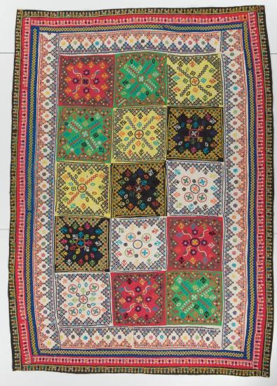 From a distance, this quilt may look like applique or patchwork, but in fact it is almost entirely embroidered.