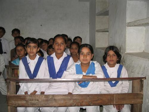 Some of the female students educated from the income their mothers made from making rallis through the Lila Handicrafts cooperative, Sindh, Pakistan.